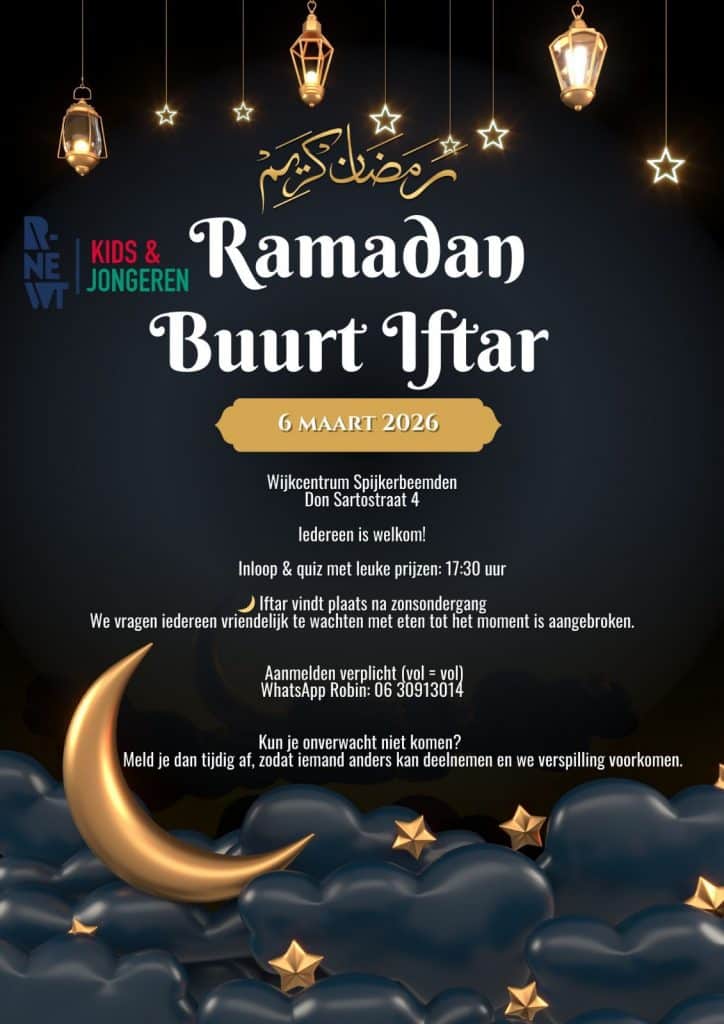 Tijdens de ramadan samen eten bij een van onze iftars of meedoen aan activiteiten? Check hieronder wat R-Newt organiseert tijdens de ramadan 2026.